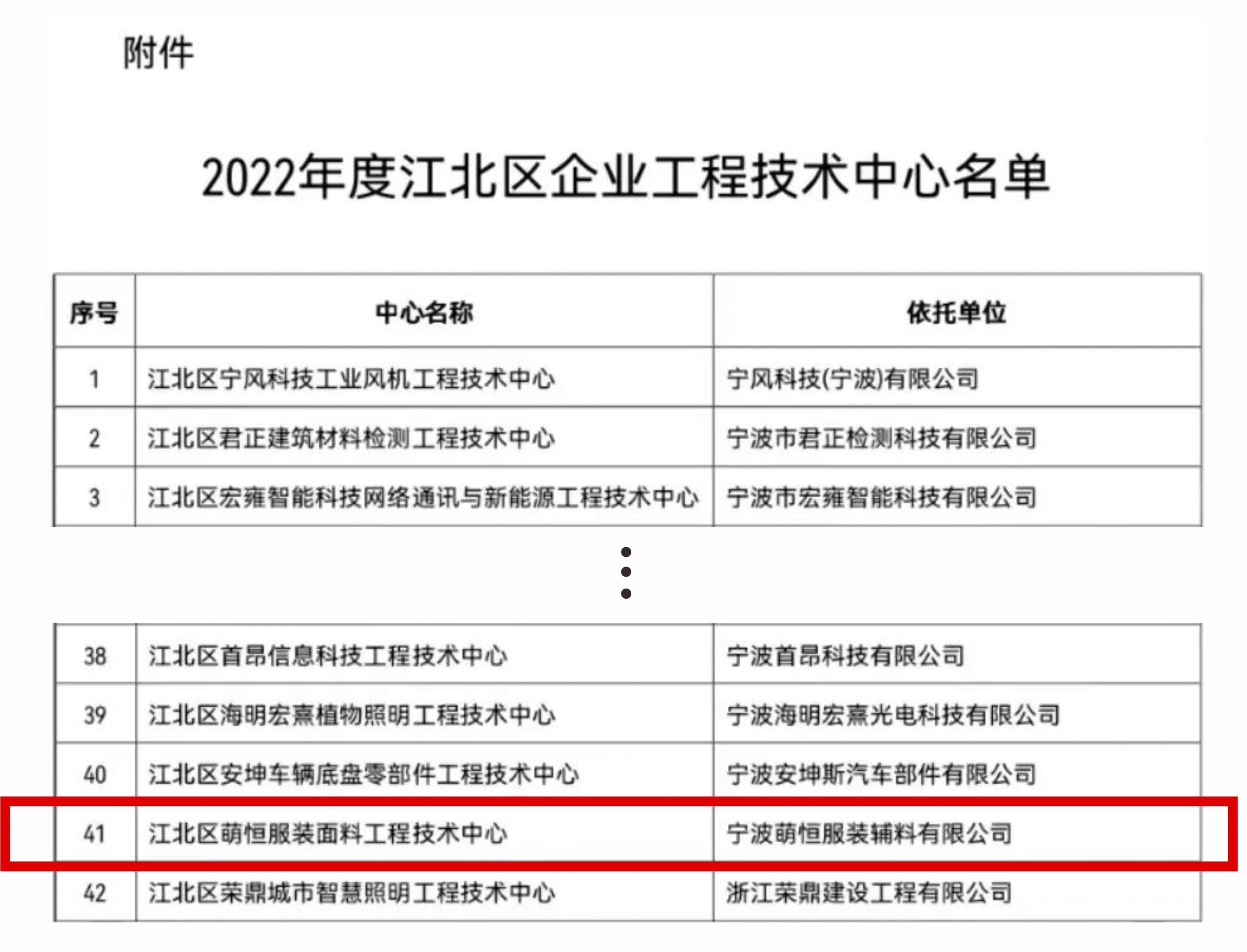 萌恒服裝面料工程技術(shù)中心獲評(píng)江北區(qū)企業(yè)工程技術(shù)中心