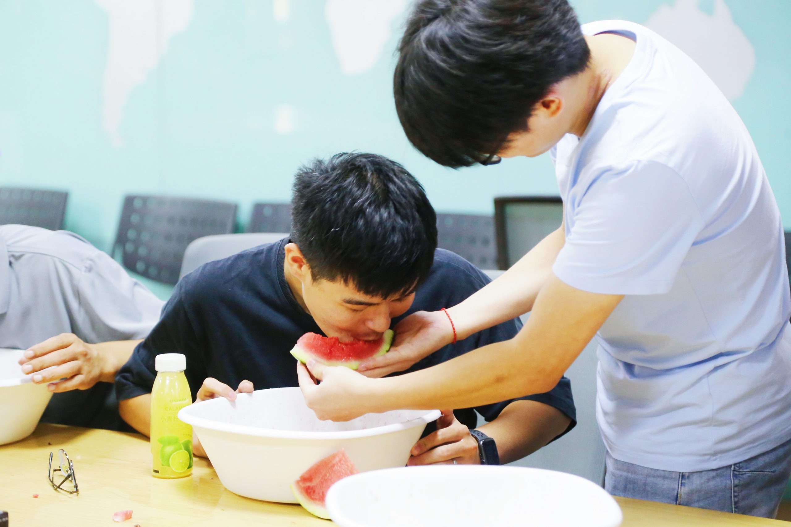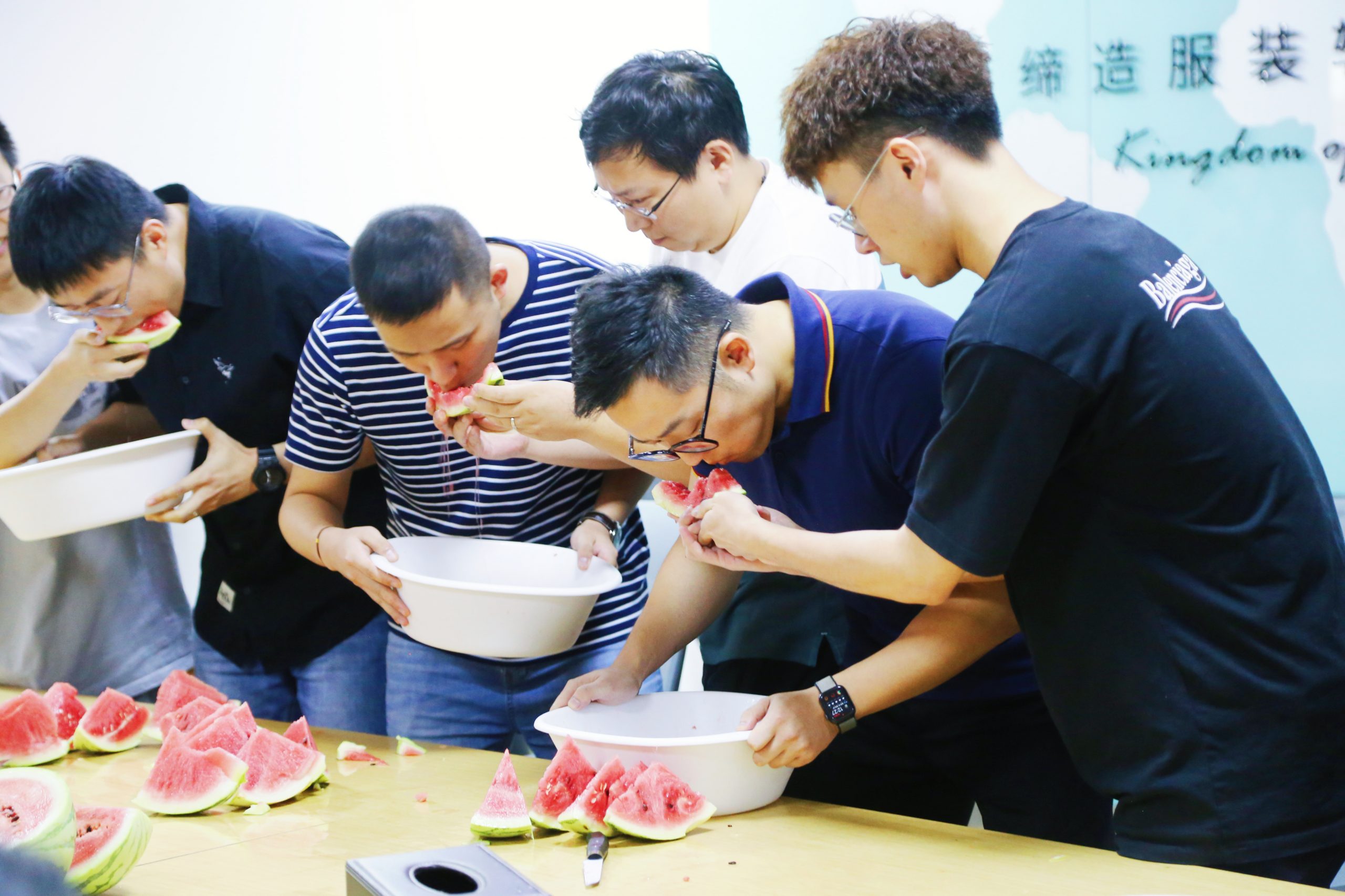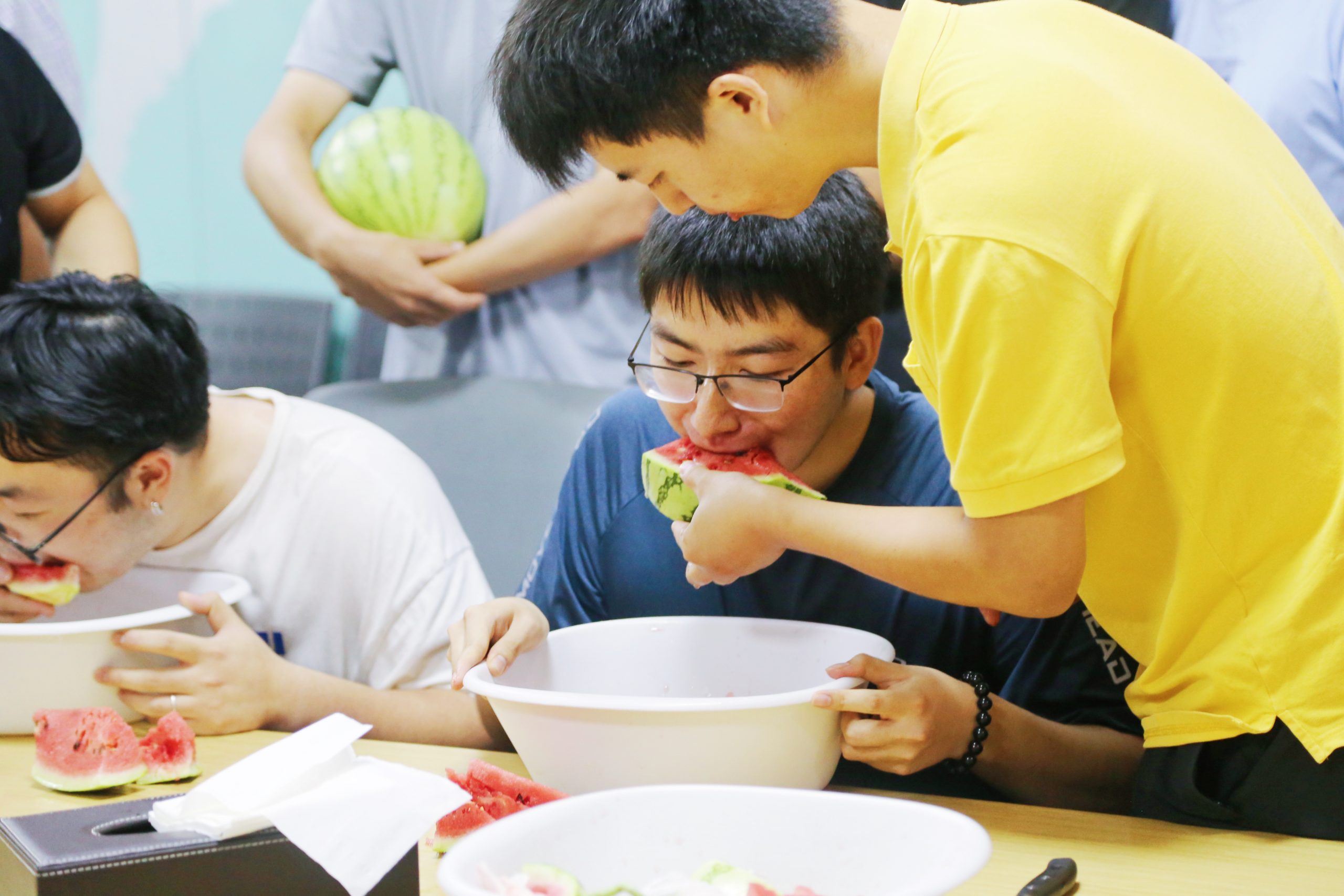 ? ? 十支參賽隊伍躍躍欲試,吃瓜人的手不能觸碰西瓜,只能依靠隊友的投喂,團隊作戰,時間是制勝法寶,配合更是秘密武器,一場“吃瓜大賽”一觸即發!摩拳擦掌的選手,沁甜冰爽的西瓜,隨著裁判的一聲令響,參賽選手們火力全開,當中有“推土機”式的狂野派,也有“生吞”式的豪放派,大家紛紛展現出真正的“吃瓜實力”,這一場吃瓜較量,比得就是速度!最終,瓜瓜瓜瓜瓜瓜隊以1分21秒10的成績摘得“吃瓜冠軍”的頭銜。