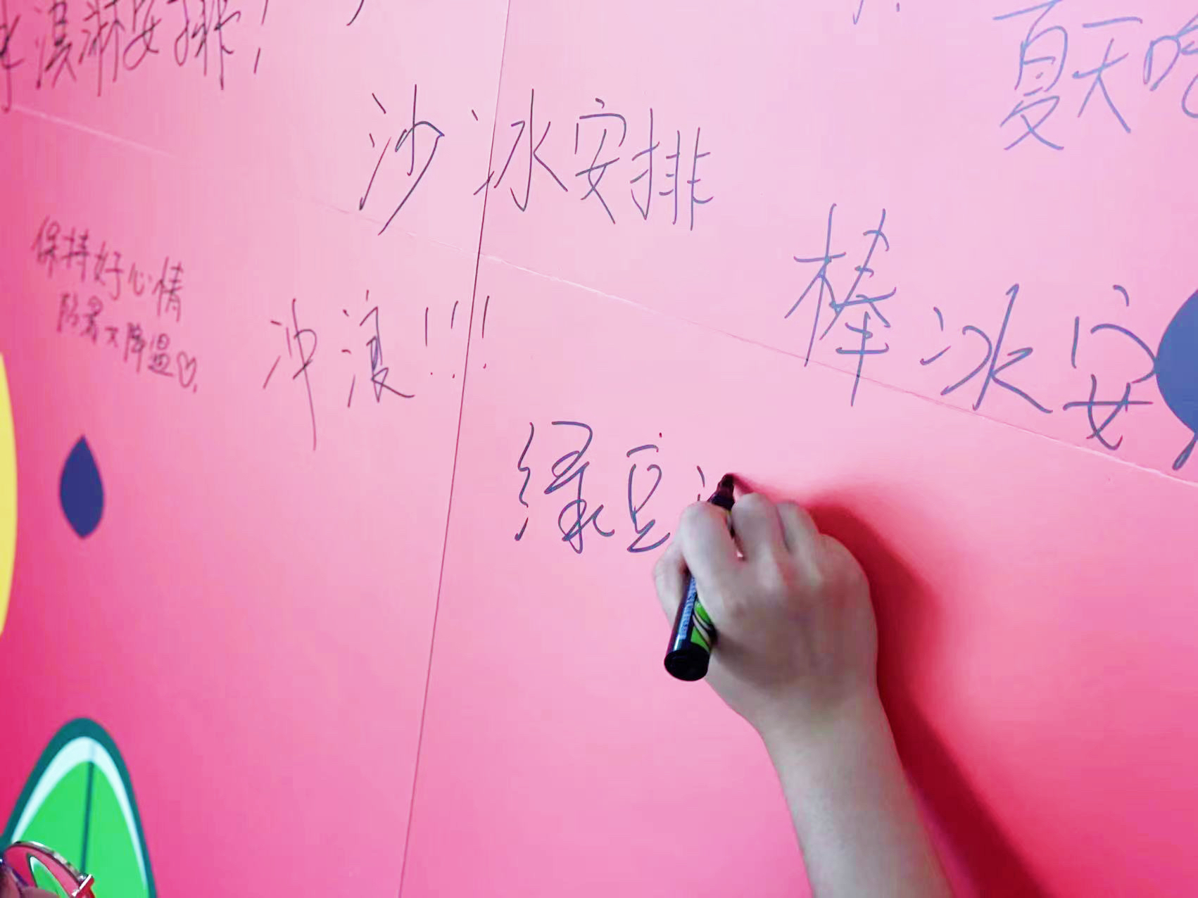 ? ? 快來分享專屬你的防暑降溫小秘籍,留言板上很快就集滿了大家的小巧思,“安排冰淇淋”、“出門隨身攜帶手持小風扇,既然改變不了環境溫度,那就手動造風”、“我這條命是空調給的”……拍照打卡更是必不可少,冷飲小推車、萌趣水果牌紛紛化身成打卡道具,三!二!一!咔嚓!一起定格我們的夏日快樂~