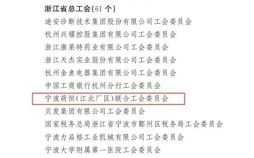 寧波萌恒(江北廠區)聯合工會委員會喜獲“全國模范職工之家”