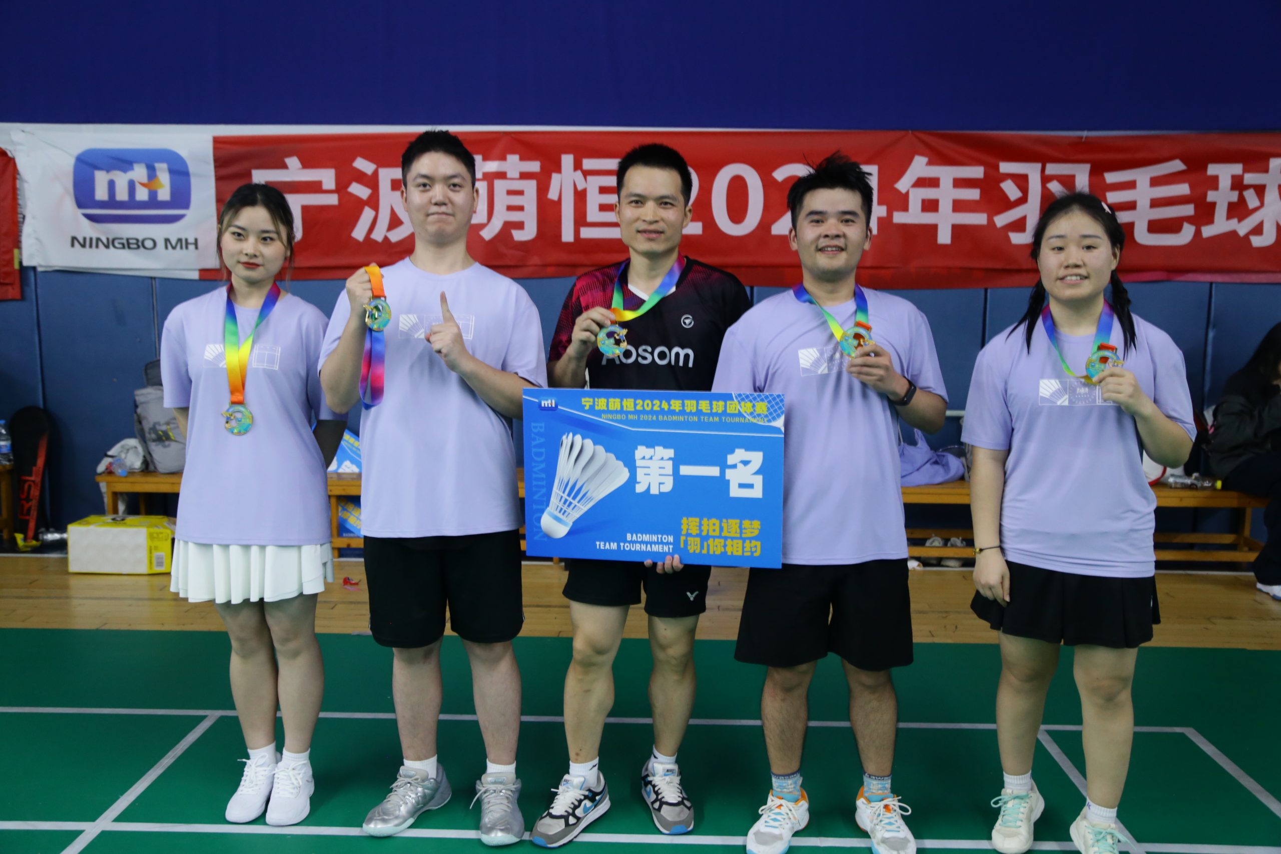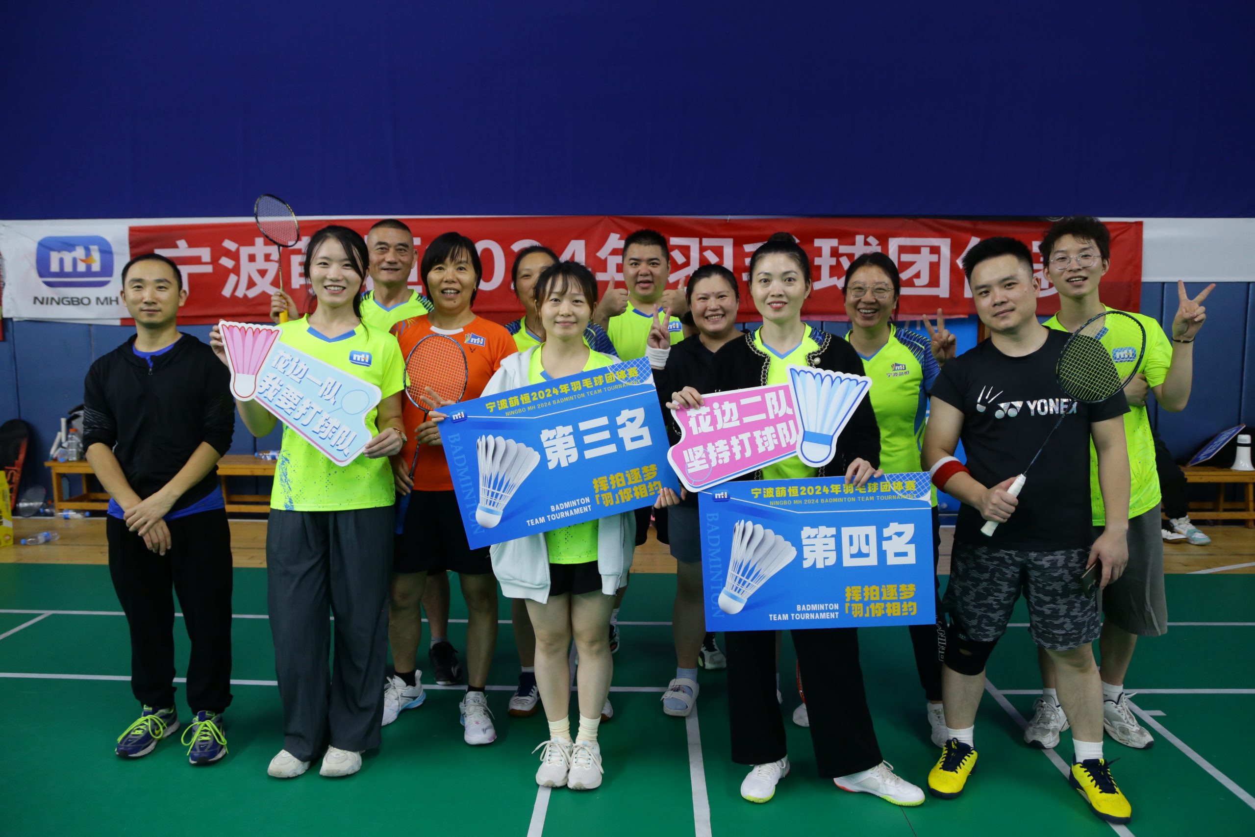 經(jīng)過五個(gè)小時(shí)的激烈角逐,萌恒羽毛球團(tuán)體賽冠軍最終由莊市一隊(duì)斬獲,國貿(mào)一隊(duì)榮獲亞軍,花邊一隊(duì)和花邊二隊(duì)分別取得第三名和第四名的好成績(jī)。