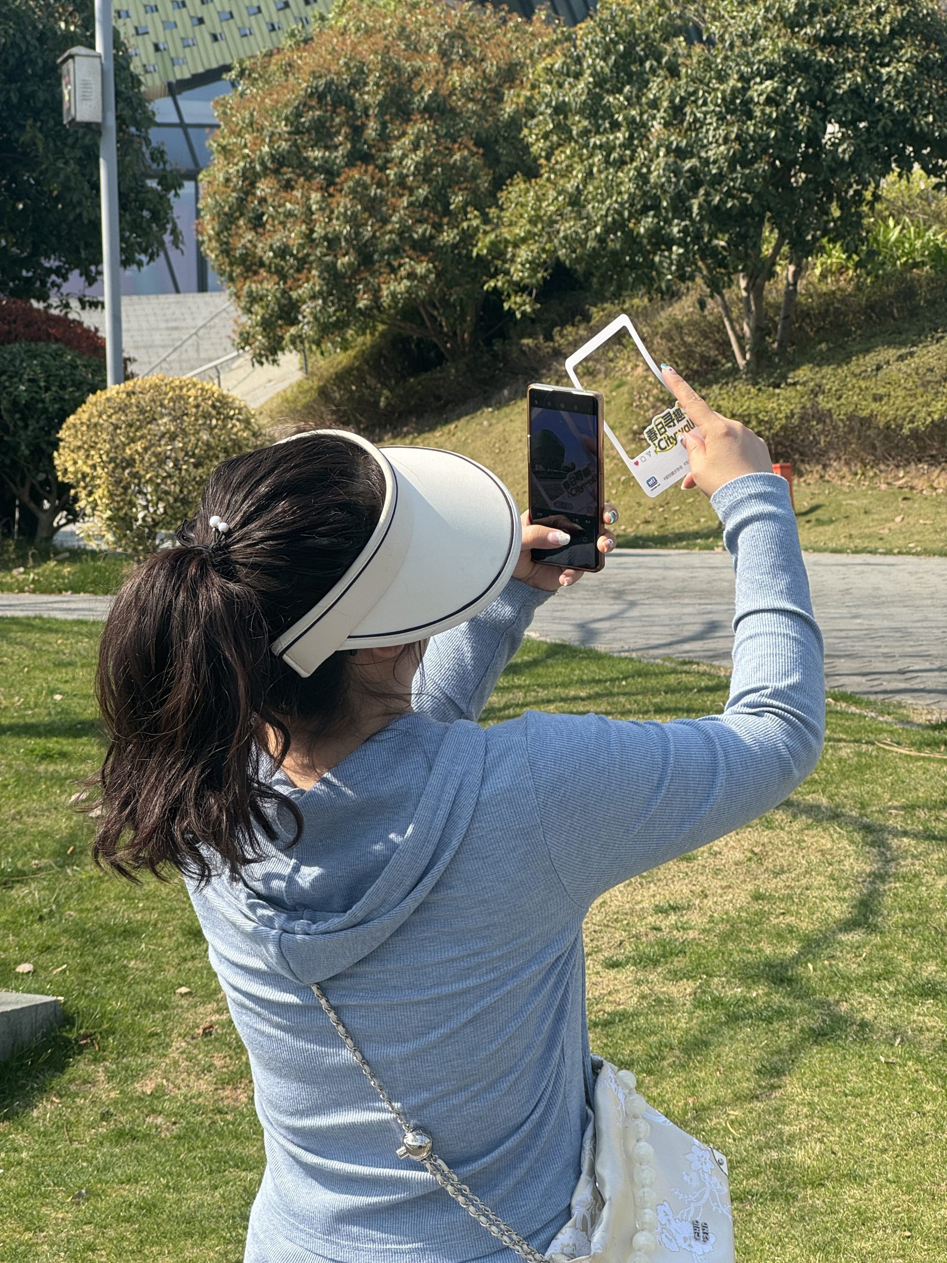東部新城生態長廊綠意盎然,小伙伴們分成6組,手持萌恒春日取景框明信片,開啟6公里環線挑戰。 “萌趣動物”捕捉靈動生機,成員們遇上城市動物會客廳的羊駝、小浣熊、火雞、袋鼠,被萌得驚呼連連;“花漾時光”定格繽紛春色,油菜花、桃花、櫻花競相綻放,成為鏡頭下的焦點;“城市記憶”探尋建筑之美,甬圖的文化意蘊與寧波中心的流線設計吸引眾人目光;終點前的“笑臉捕手”任務,各組創意擺拍,手舉取景框的合照洋溢著團隊的活力與默契。