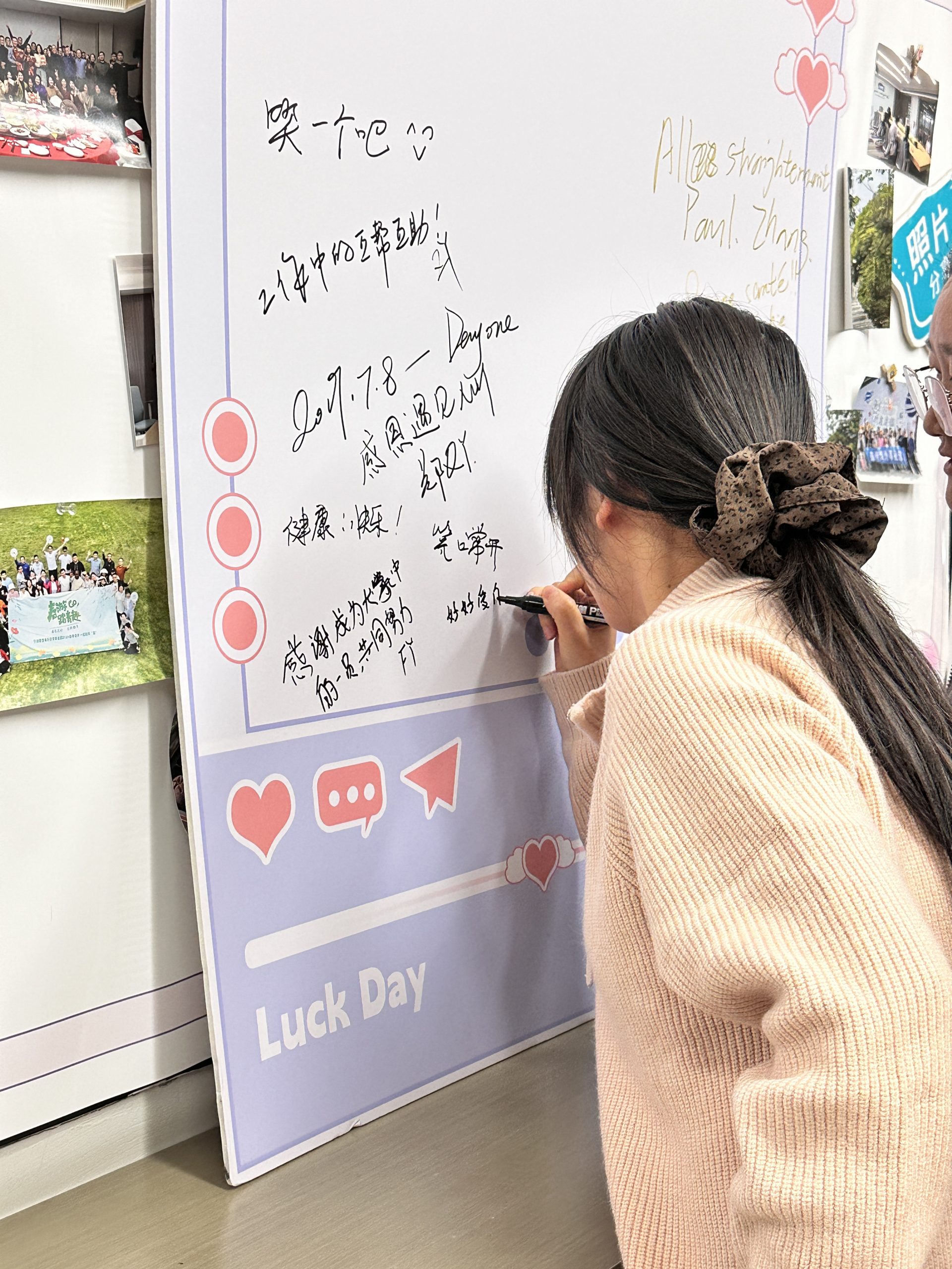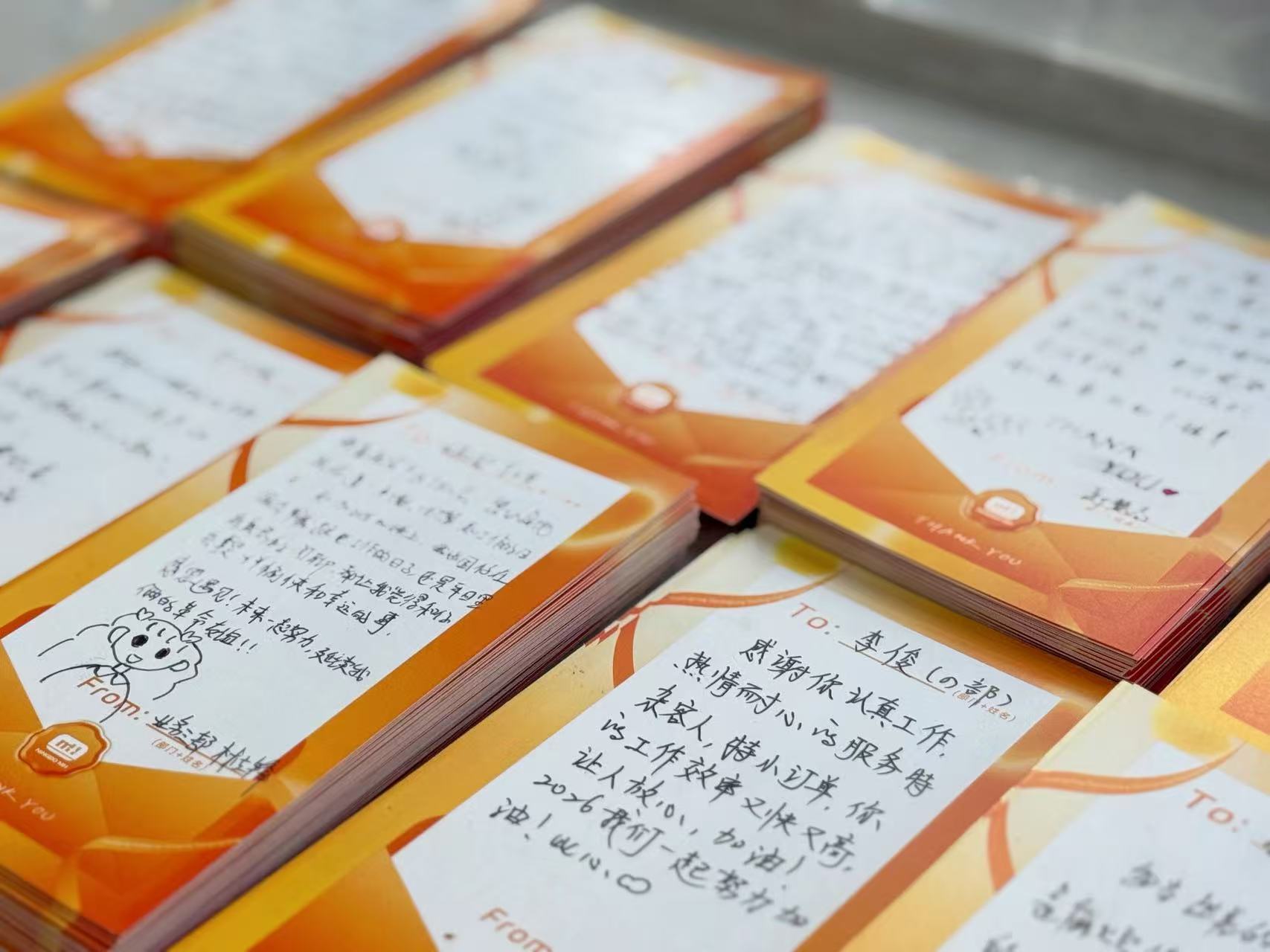 平日我們常忙于工作,可能忽略了表達謝意。此次活動特別設置線上、線下雙渠道感恩傳遞方式,每個人都能找到適合自己的表達方式。線上發送感恩留言,讓謝意穿越網絡,實時抵達;線下親手書寫卡片,將感謝化為文字,永久珍藏。下午同事們拿著卡片和禮物,親手交到想要感謝的人手中,所有的情誼在彼此交流的眼神中流淌。有人感謝伙伴的協作,有人感恩師父的指導,有人感激團隊的配合,每一個感謝背后,都藏著一個溫暖的故事。