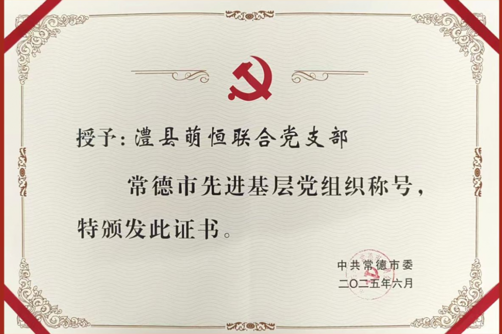 澧縣萌恒聯合黨支部獲評常德市“先進基層黨組織”稱號